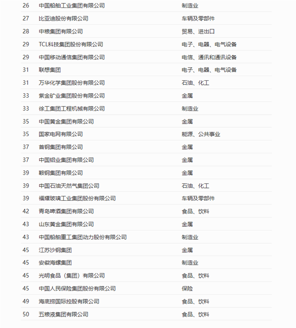 下面是完整榜單: