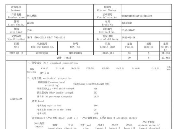 Q355D槽鋼材質(zhì)報告