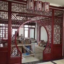 本公司生產(chǎn)月亮門(落地罩)采用俄羅斯烘干板精加工而成,所標(biāo)價格為成品價格,邊框60看面*40厚,內(nèi)花格15看面*18厚,雙面子彈線。單位面積不減空間。